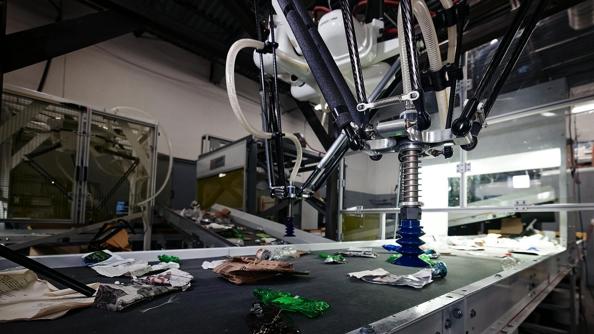 AMP Delta is a high-speed, intelligent robotics system designed for faster and more precise recovery of plastics. Powered by AMP AI, which recognizes plastics by material composition, color, clarity, opacity, and form factor, Delta accurately sorts material into high-quality bales.