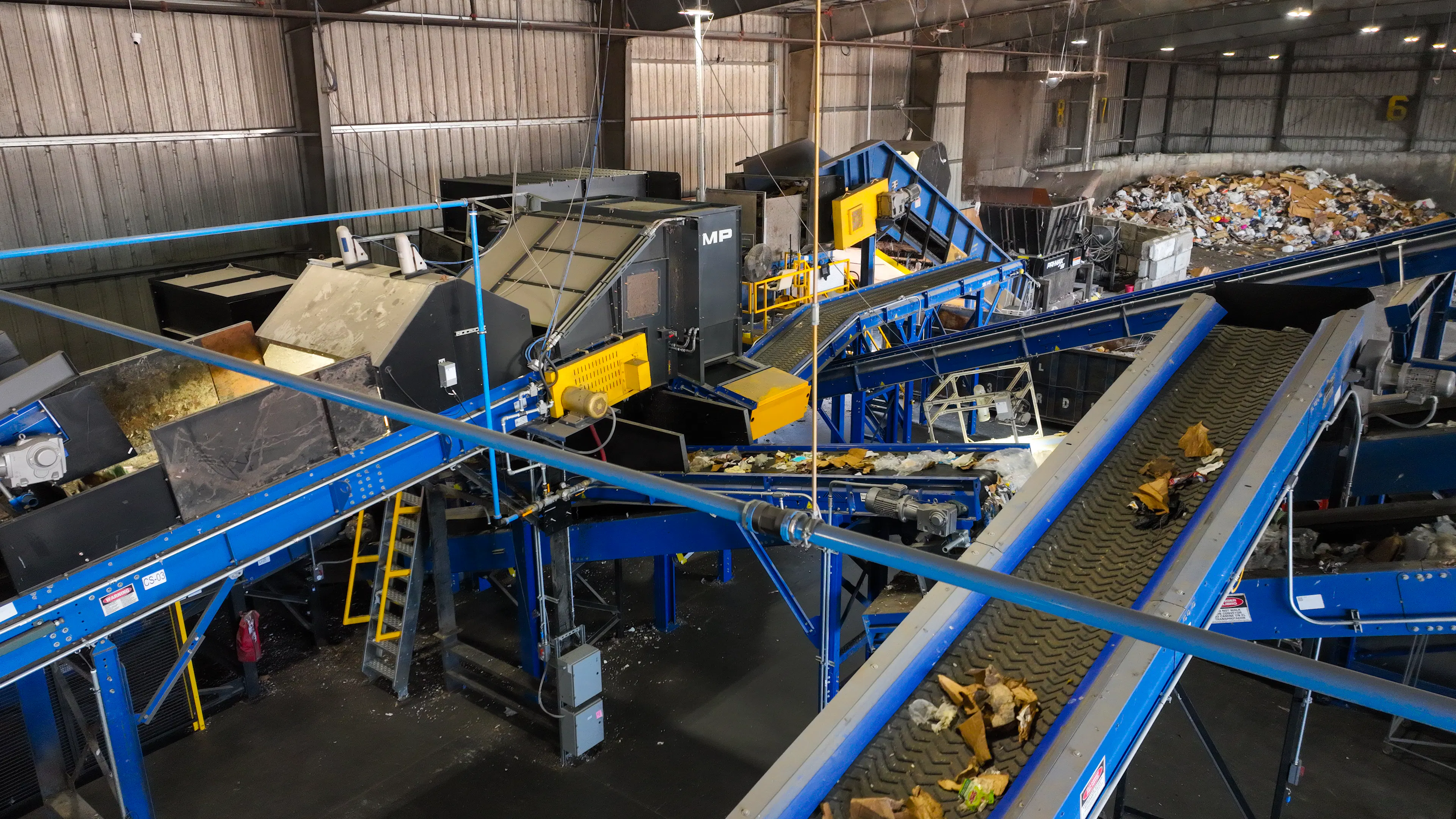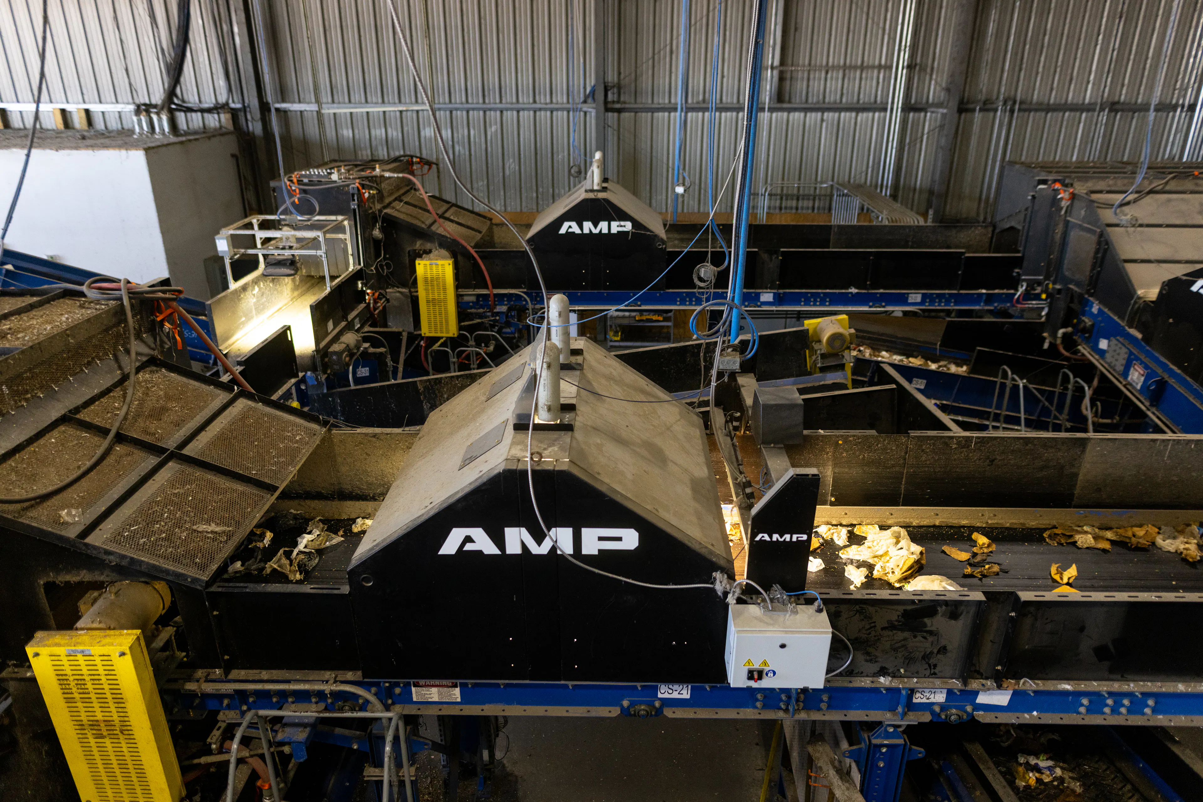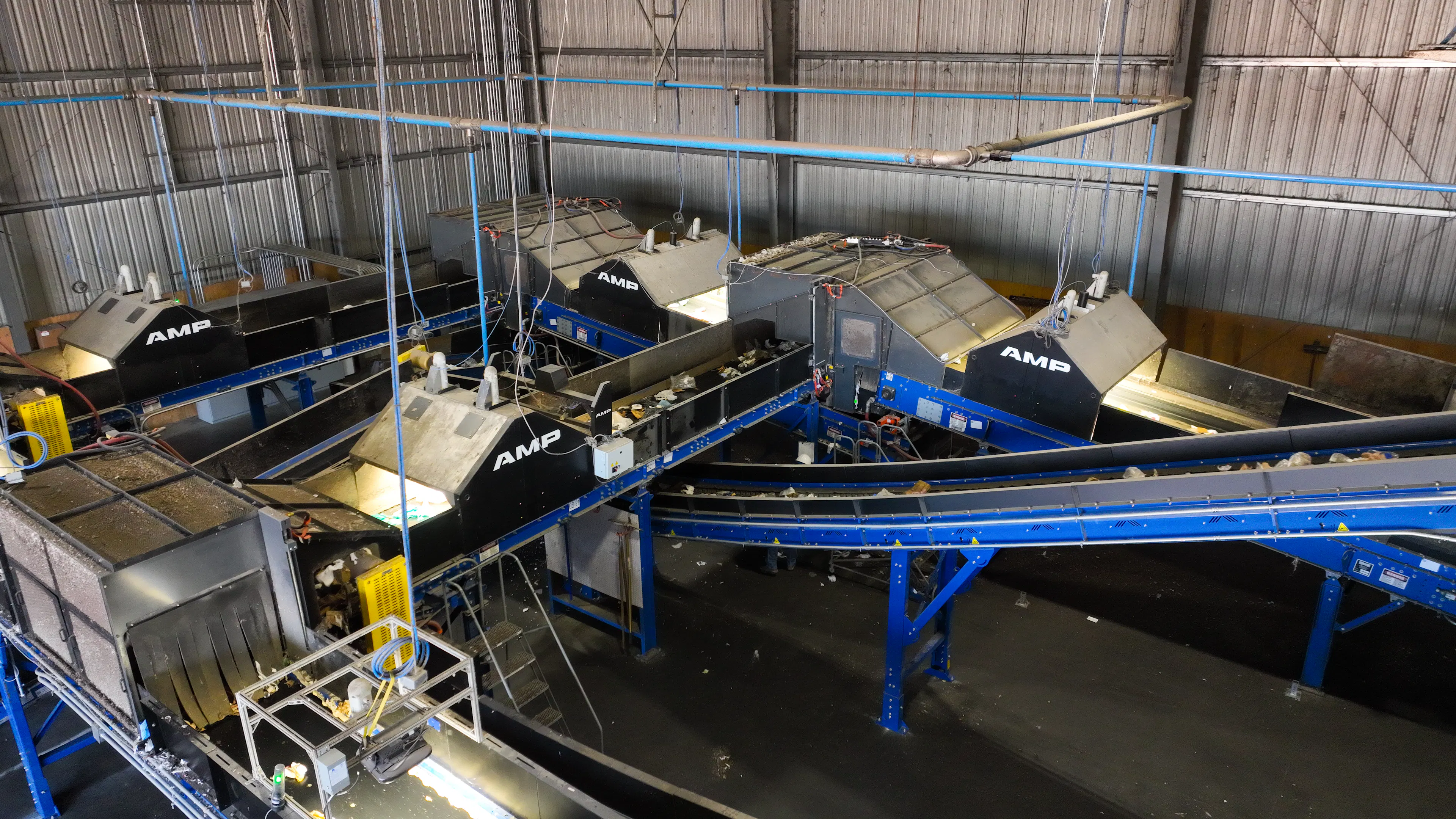 AMP's system accepts raw municipal solid waste, including sealed trash bags, rather than pre-separated recyclable streams. Every piece of waste entering the system is analyzed through AMP's AMP ONE platform, which separates material into individual recyclable commodity streams. Organic material is converted into biochar through a pyrolysis process, and only residue is returned to SPSA's landfill — dramatically reducing the volume of material that requires disposal.
